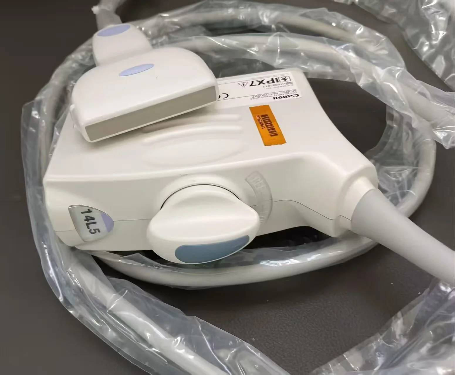 The Toshiba/Canon PLT-1005BT Linear Array transducer has a frequency range of 5.0 – 14.0 MHz. and supports the following applications: Small Parts, Vascular. The Toshiba PLT-1005BT transducer is compatible with: Toshiba Aplio 300 (TUS-A300); Toshiba Aplio 400 (TUS-A400); Toshiba Aplio 500 (TUS-A500) ultrasound systems.